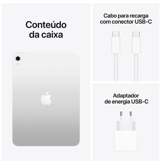 • Itens InclusosiPad, Cabo para recarga com conector USB‑C (1 metro), Adaptador de energia USB‑C de 20W